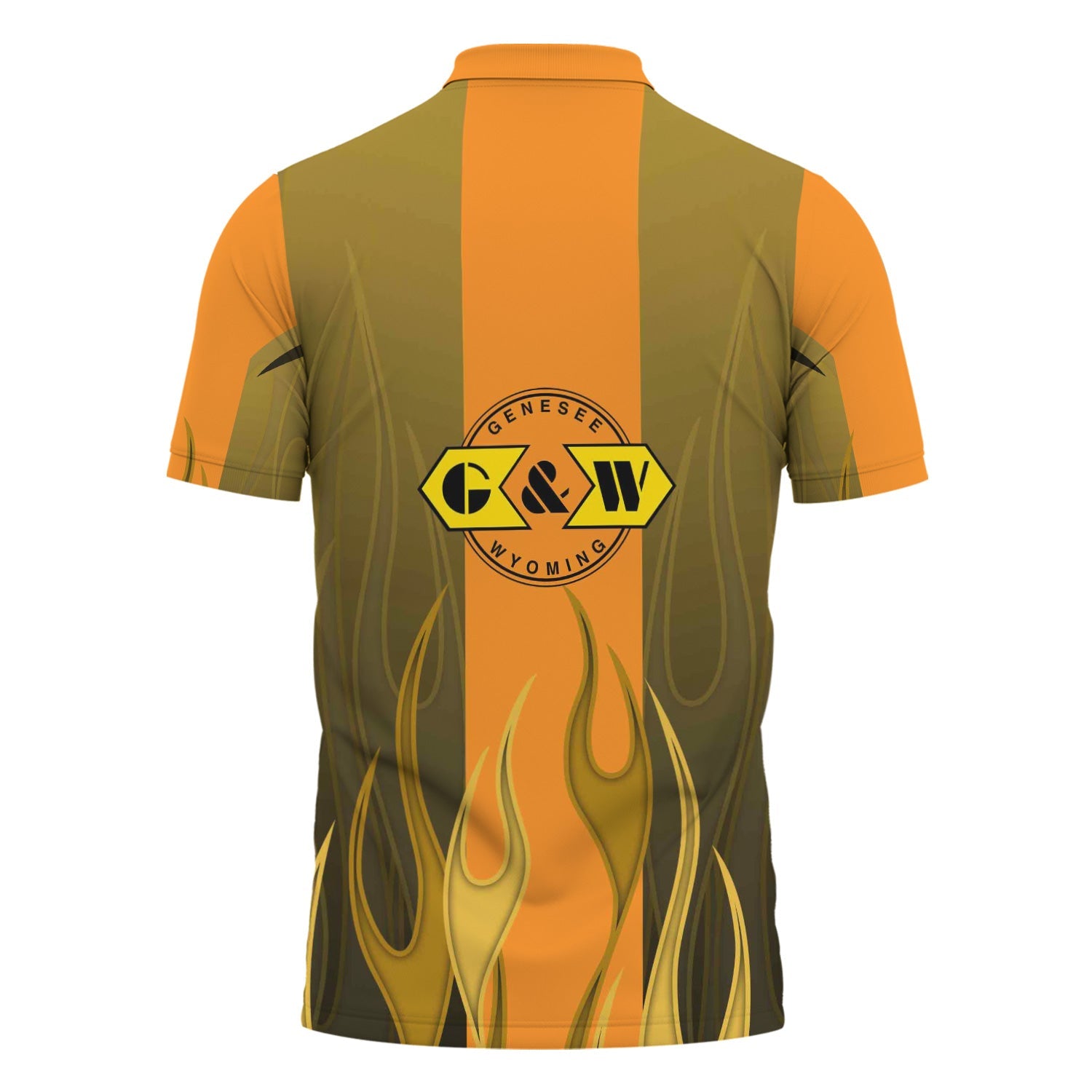 Railspirit Custom Name and Job Title Genesee & Wyoming Inc. Railroad Polo Shirt Flame Graphic Train Shirt