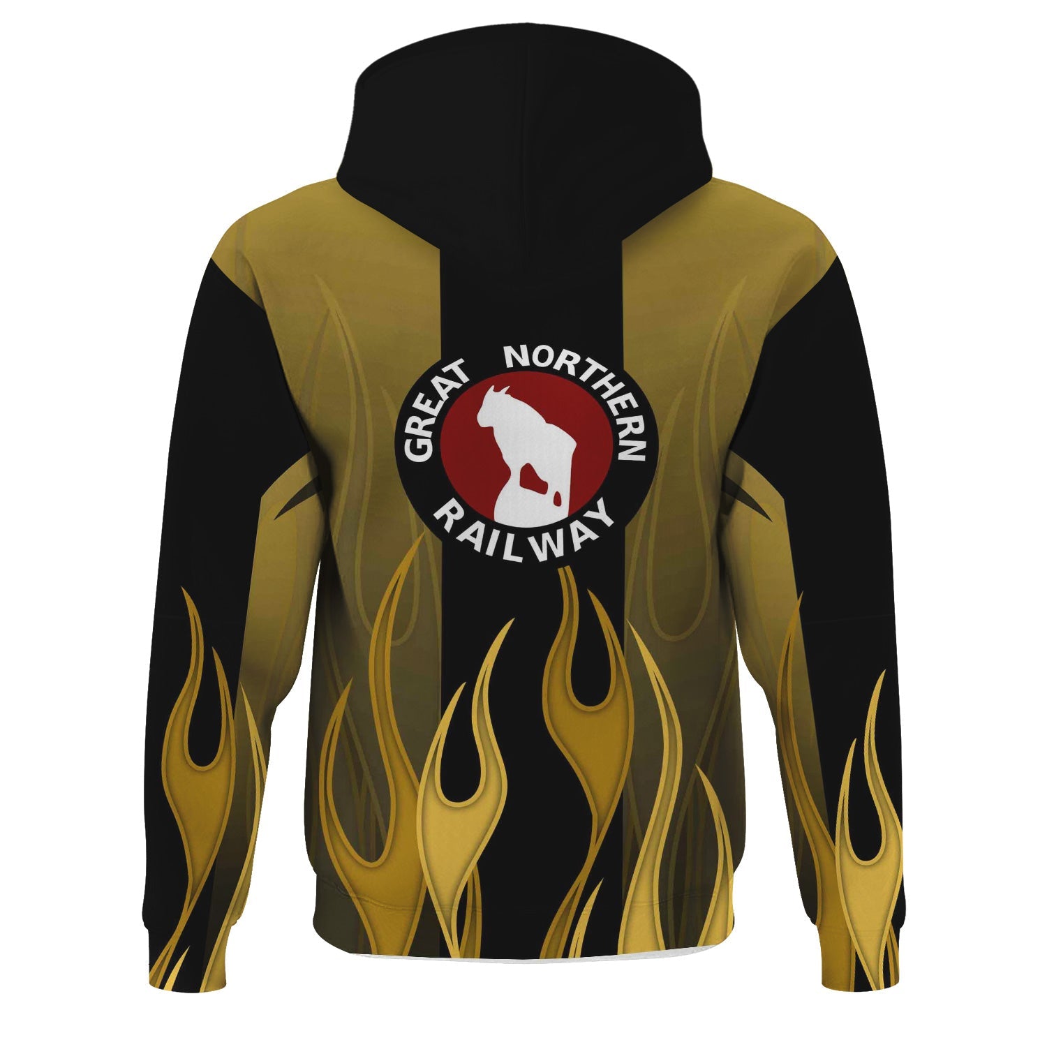 Railspirit Custom Name and Job Title Great Northern Railway Hoodie Flame Graphic GNR Train Zip Up Hoodie