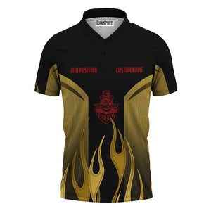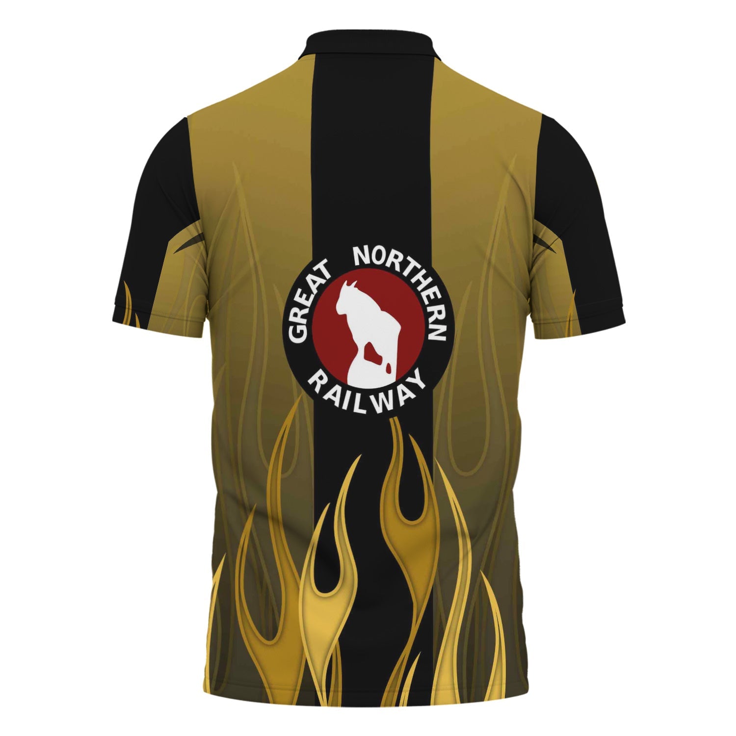 Railspirit Custom Name and Job Title Great Northern Railway Polo Shirt Flame Graphic GNR Train Shirt
