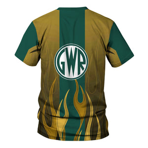 Railspirit Custom Name and Job Title Great Western Railway T-Shirt Flame Graphic Train Shirt