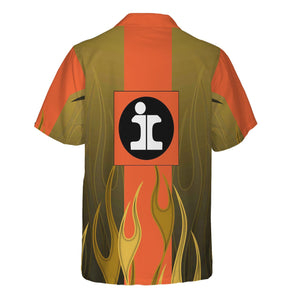Railspirit Custom Name and Job Title Illinois Central Railroad Hawaiian Shirt Flame Graphic Train Shirt For Rail Workers