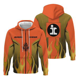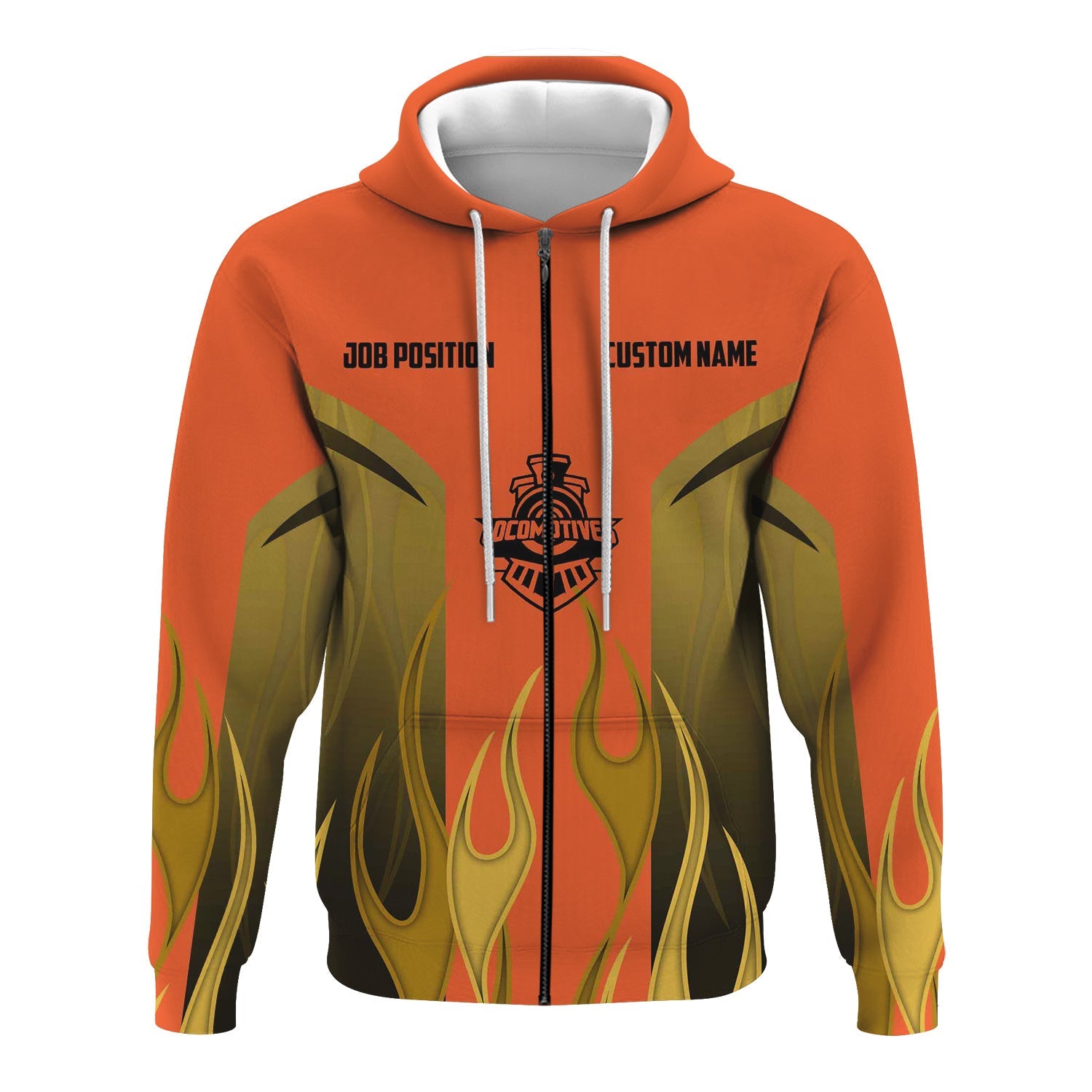 Railspirit Custom Name and Job Title Illinois Central Railroad Hoodie Flame Graphic Train Zip Up Hoodie