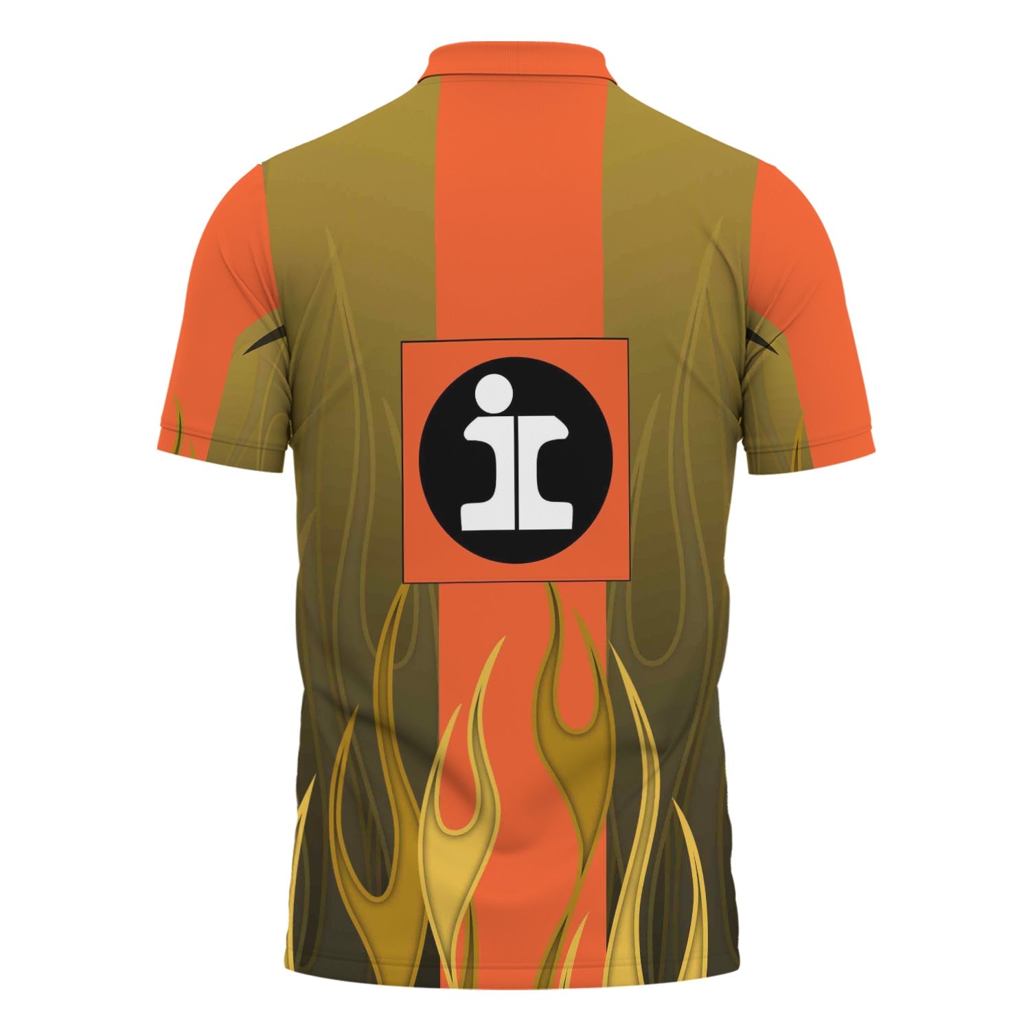 Railspirit Custom Name and Job Title Illinois Central Railroad Polo Shirt Flame Graphic Train Shirt
