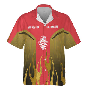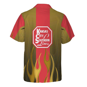 Railspirit Custom Name and Job Title Kansas City Southern Hawaiian Shirt Flame Graphic Train Shirt For Rail Workers