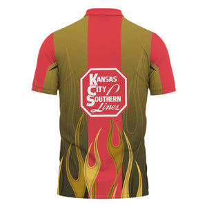 Railspirit Custom Name and Job Title Kansas City Southern Polo Shirt Flame Graphic Train Shirt