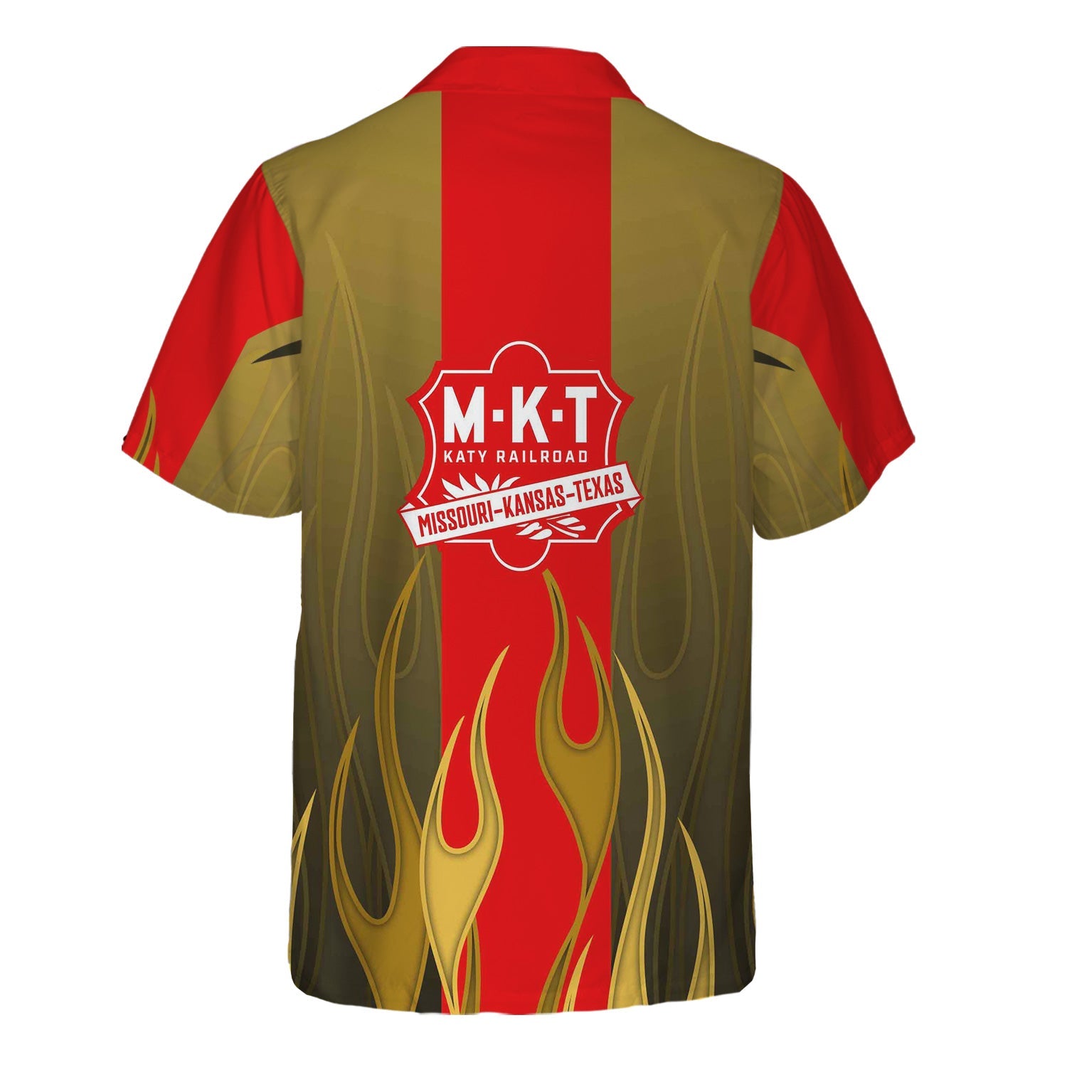 Railspirit Custom Name and Job Title Katy Railroad Hawaiian Shirt Flame Graphic Train Shirt For Rail Workers