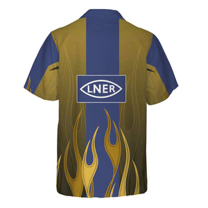 Railspirit Custom Name and Job Title London and North Eastern Railway Hawaiian Shirt Flame Graphic Train Shirt For Rail Workers