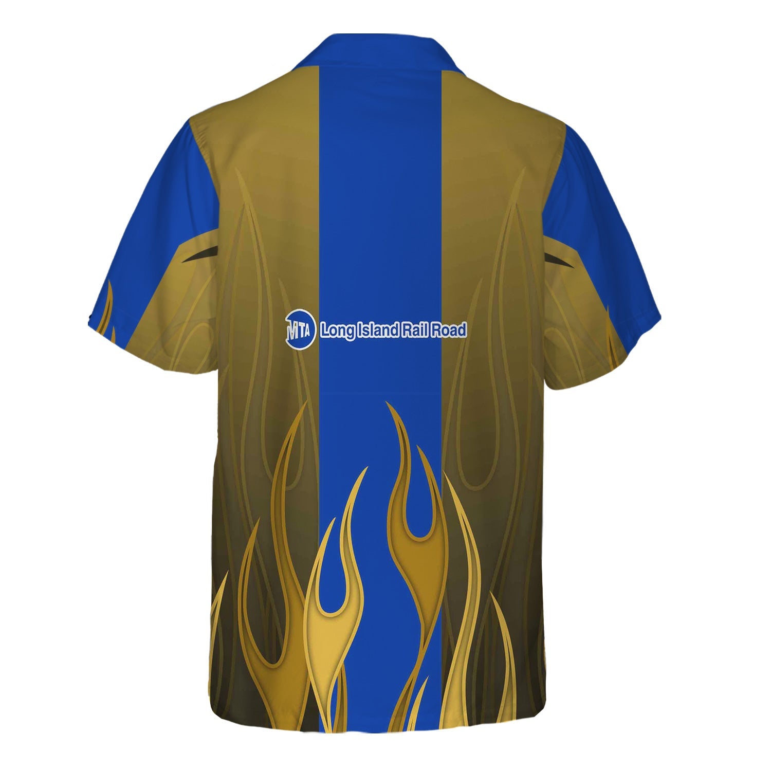 Railspirit Custom Name and Job Title Long Island Railroad Hawaiian Shirt Flame Graphic Train Shirt For Rail Workers