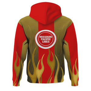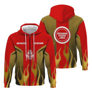 Railspirit Custom Name and Job Title Missouri Pacific Railroad Hoodie Flame Graphic Train Zip Up Hoodie