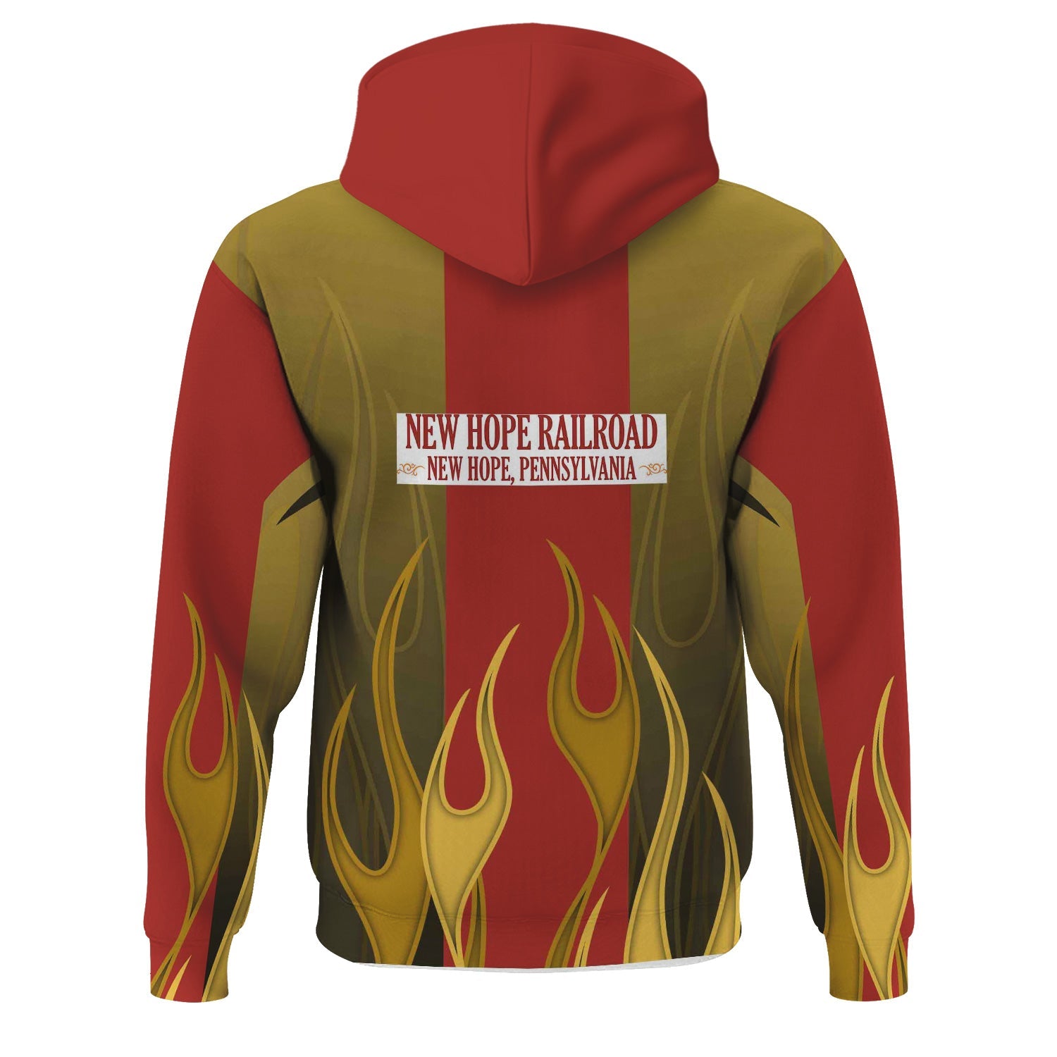 Railspirit Custom Name and Job Title New Hope Railroad Hoodie Flame Graphic Train Zip Up Hoodie