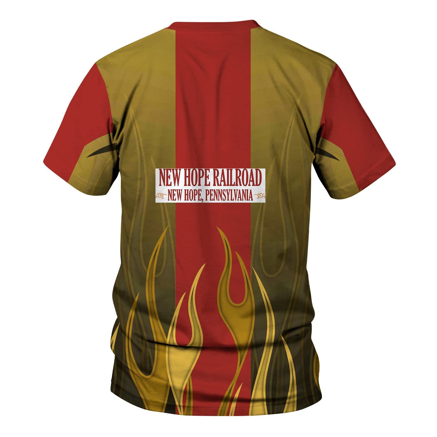 Railspirit Custom Name and Job Title New Hope Railroad T-Shirt Flame Graphic Train Shirt