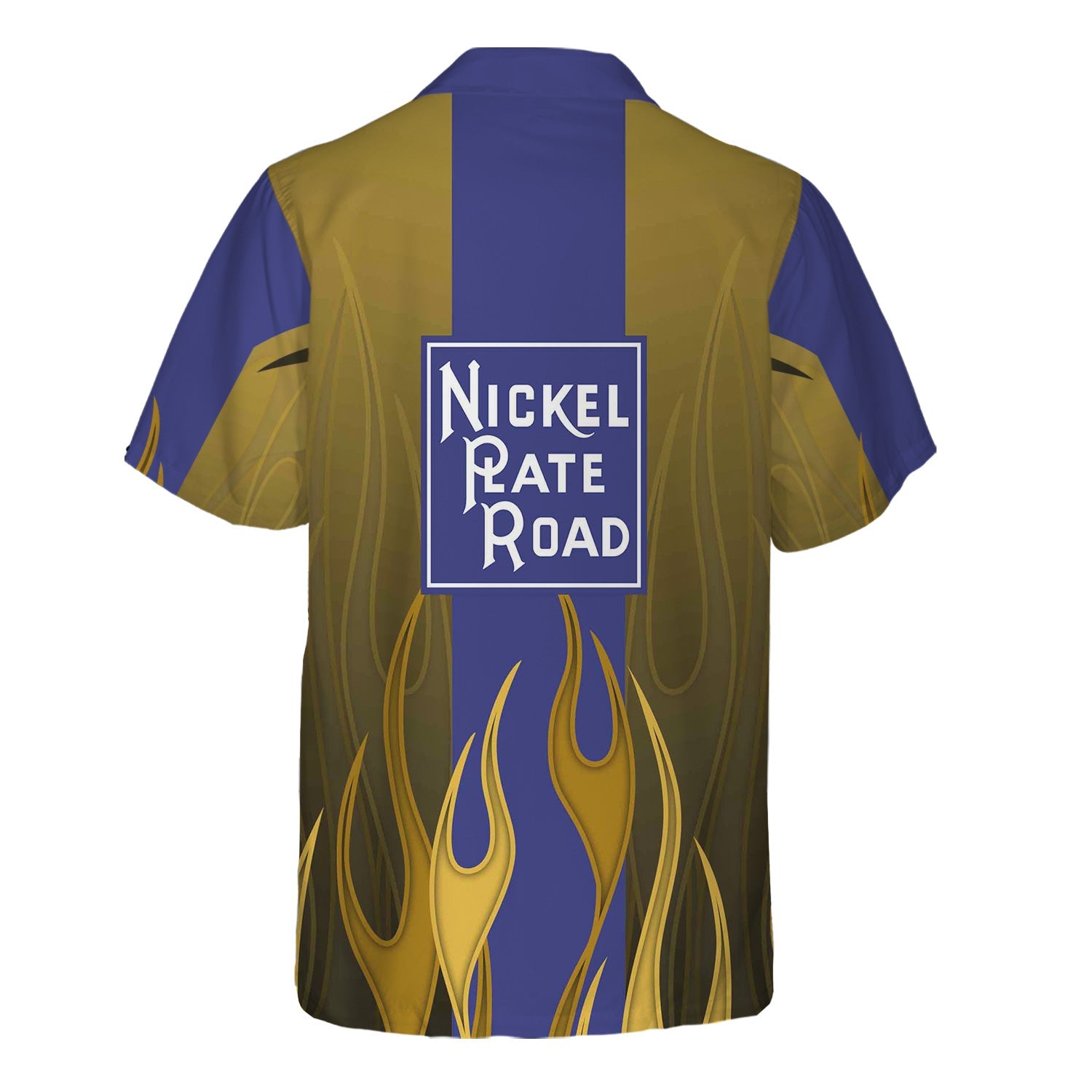Railspirit Custom Name and Job Title New York, Chicago and St. Louis Railroad Hawaiian Shirt Flame Graphic Nickel Plate Road Train Shirt