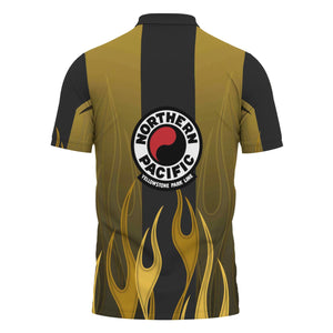 Railspirit Custom Name and Job Title Northern Pacific Railway Polo Shirt Flame Graphic Train Shirt