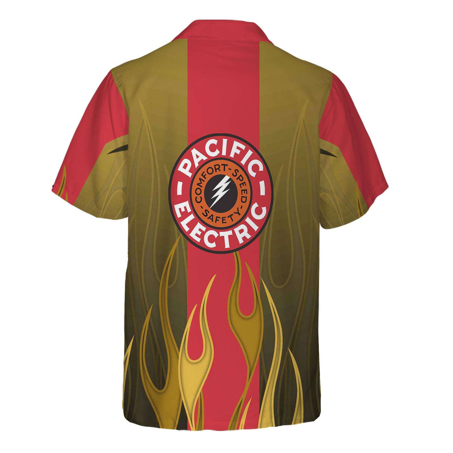 Railspirit Custom Name and Job Title Pacific Electric Railroad Hawaiian Shirt Flame Graphic Train Shirt For Rail Workers