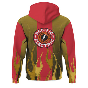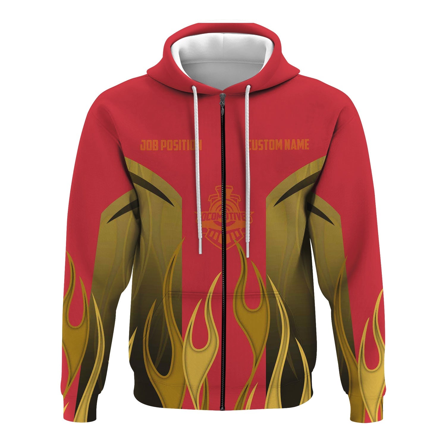 Railspirit Custom Name and Job Title Pacific Electric Railroad Hoodie Flame Graphic Train Zip Up Hoodie