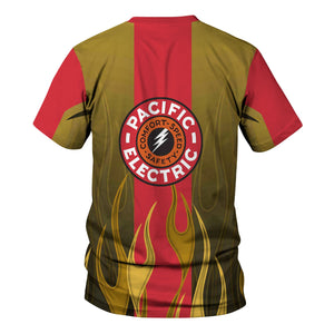 Railspirit Custom Name and Job Title Pacific Electric Railroad T-Shirt Flame Graphic Train Shirt