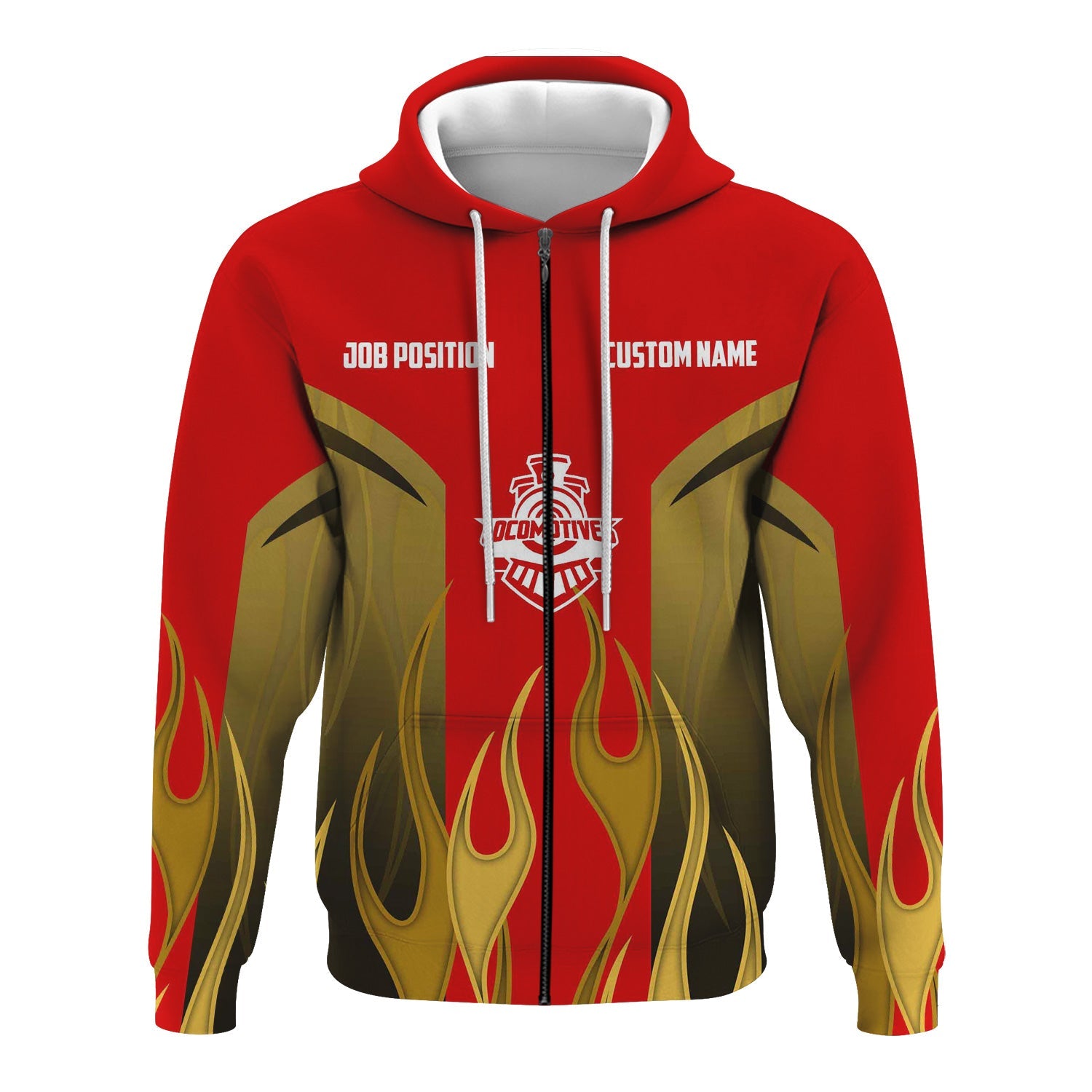 Railspirit Custom Name and Job Title Pennsylvania Railroad Hoodie Flame Graphic Train Zip Up Hoodie