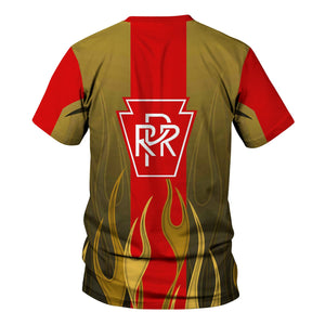 Railspirit Custom Name and Job Title Pennsylvania Railroad T-Shirt Flame Graphic Train Shirt