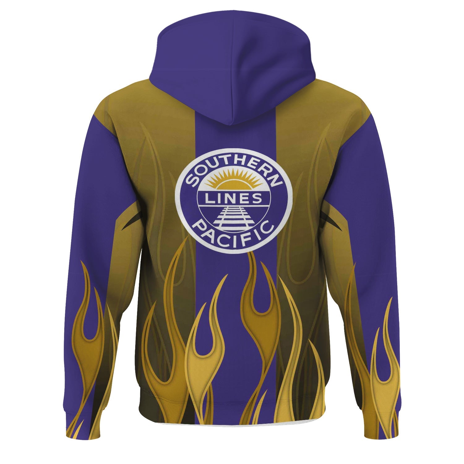 Railspirit Custom Name and Job Title Southern Pacific Railroad Hoodie Flame Graphic Train Zip Up Hoodie