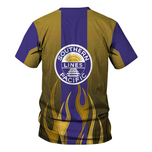 Railspirit Custom Name and Job Title Southern Pacific Railroad T-Shirt Flame Graphic Train Shirt
