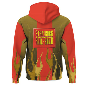 Railspirit Custom Name and Job Title Strasburg Railroad Hoodie Flame Graphic Train Zip Up Hoodie