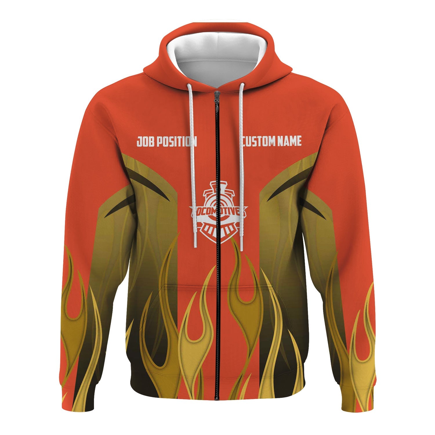 Railspirit Custom Name and Job Title Texas and Pacific Railway Hoodie Flame Graphic Train Zip Up Hoodie