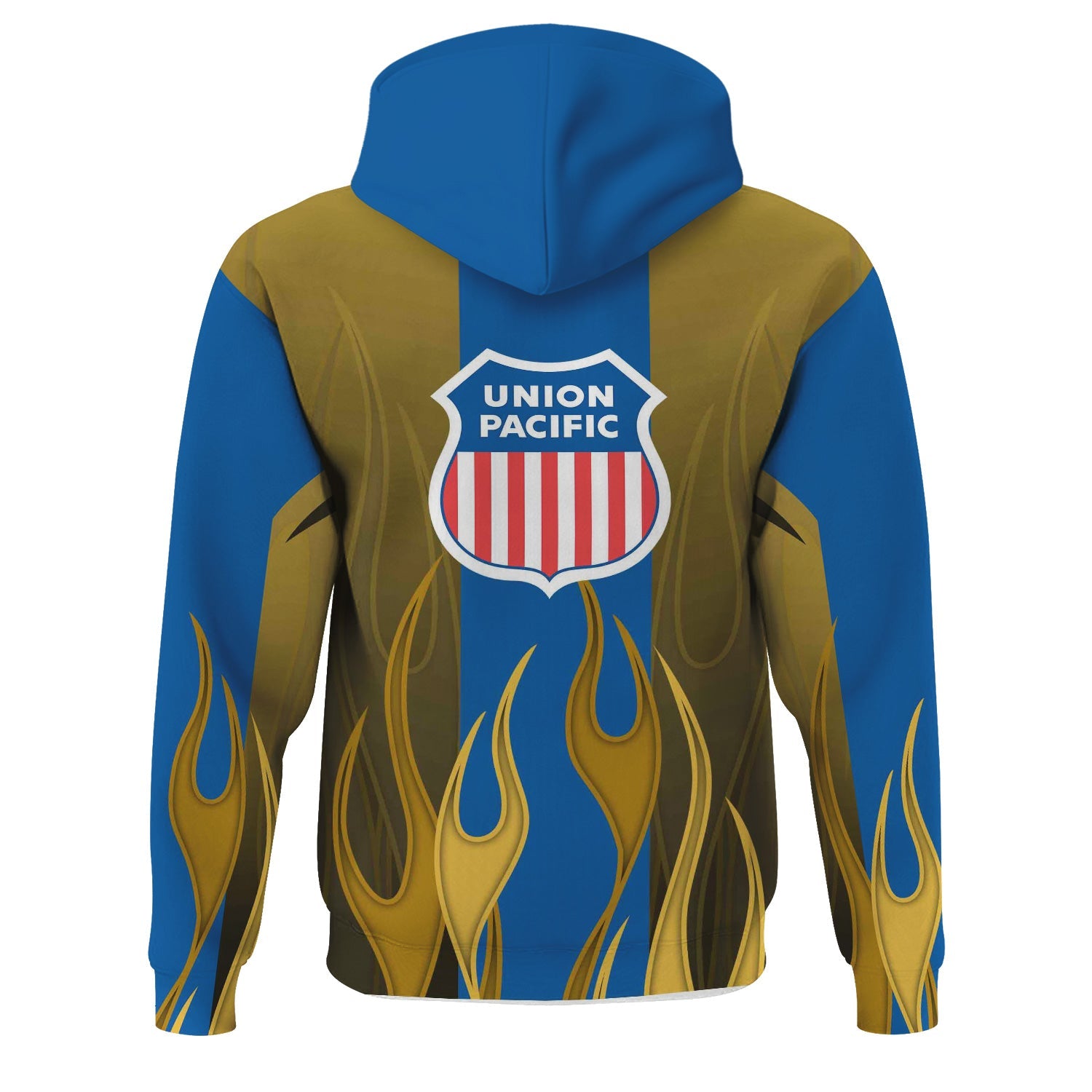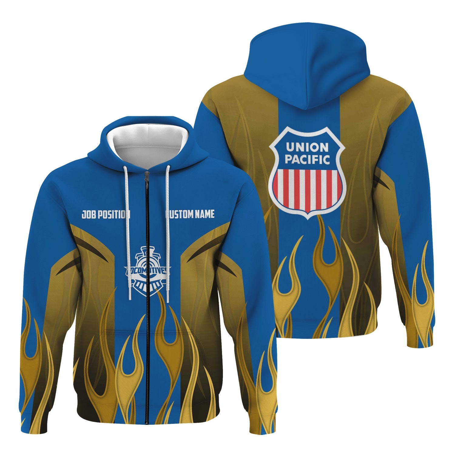 Railspirit Custom Name and Job Title Union Pacific Railroad Hoodie Flame Graphic Big Boy Train Zip Up Hoodie