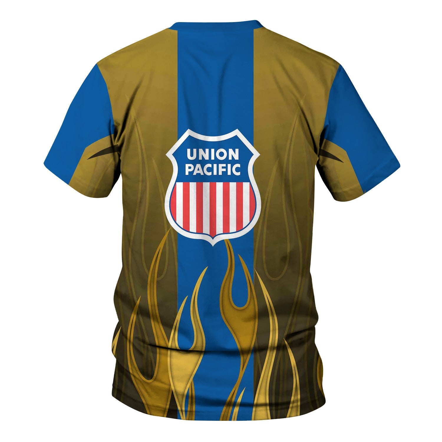 Railspirit Custom Name and Job Title Union Pacific Railroad T-Shirt Flame Graphic Big Boy Train Shirt