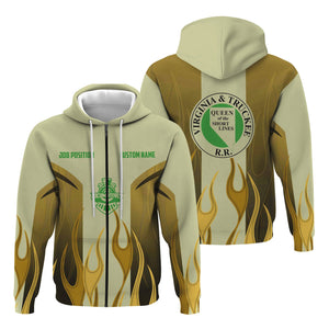 Railspirit Custom Name and Job Title Virginia & Truckee Railroad Hoodie Flame Graphic Train Zip Up Hoodie