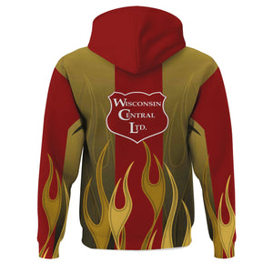 Railspirit Custom Name and Job Title Wisconsin Central Ltd Railroad Hoodie Flame Graphic Train Zip Up Hoodie