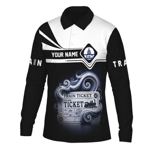 Railspirit Custom Name Baltimore and Ohio Railroad Long Sleeve Polo Shirt Train Ticket B&O Printed Shirt