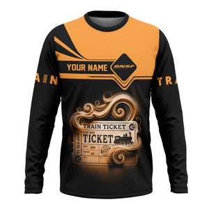 Railspirit Custom Name BNSF Railway Long Sleeve Shirt American Train Ticket Printed Shirt