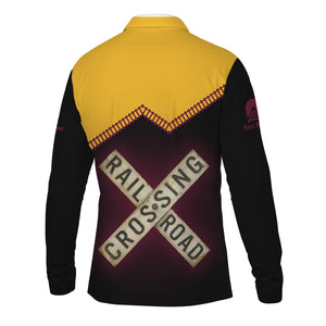 Railspirit Custom Name Boston and Maine Railroad Long Sleeve Polo Shirt Railroad Crossing Printed Train Track Shirt