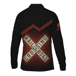 Railspirit Custom Name Chicago and North Western Railway Long Sleeve Polo Shirt Railroad Crossing Printed Train Track Shirt