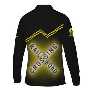 Railspirit Custom Name Clinchfield Railroad Long Sleeve Polo Shirt Railroad Crossing Printed Train Track Shirt