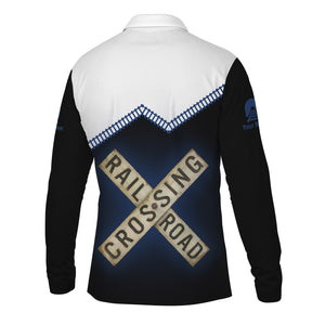 Railspirit Custom Name Duluth, Winnipeg and Pacific Railway Long Sleeve Polo Shirt Railroad Crossing Printed Train Track Shirt