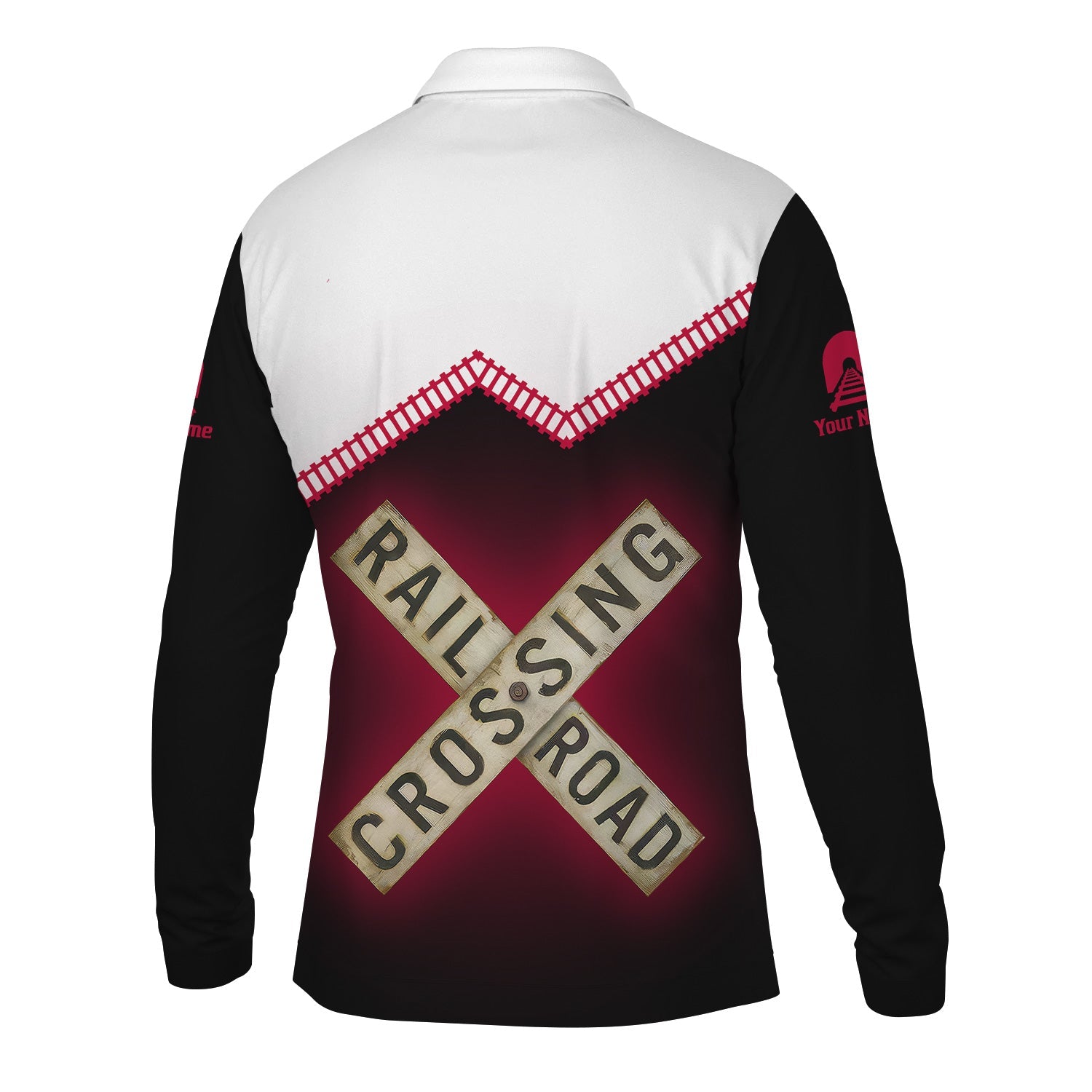 Railspirit Custom Name Fleischmann And Western Railroad Long Sleeve Polo Shirt Railroad Crossing Printed Train Track Shirt
