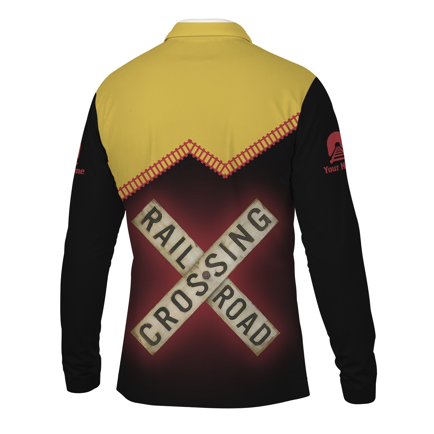 Railspirit Custom Name Florida East Coast Railway Long Sleeve Polo Shirt Railroad Crossing Printed Train Track Shirt