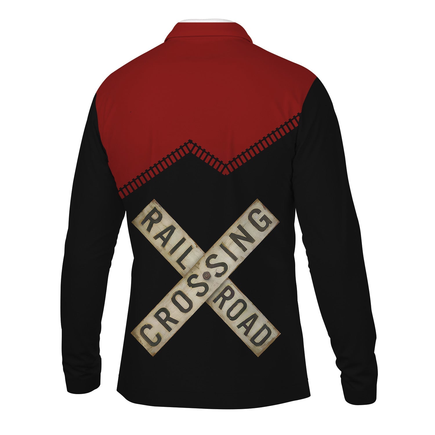 Railspirit Custom Name Great Northern Railway Long Sleeve Polo Shirt Railroad Crossing GNR Printed Train Track Shirt