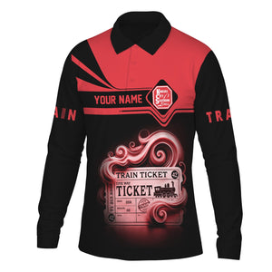 Railspirit Custom Name Kansas City Southern Long Sleeve Polo Shirt Train Ticket Printed Shirt