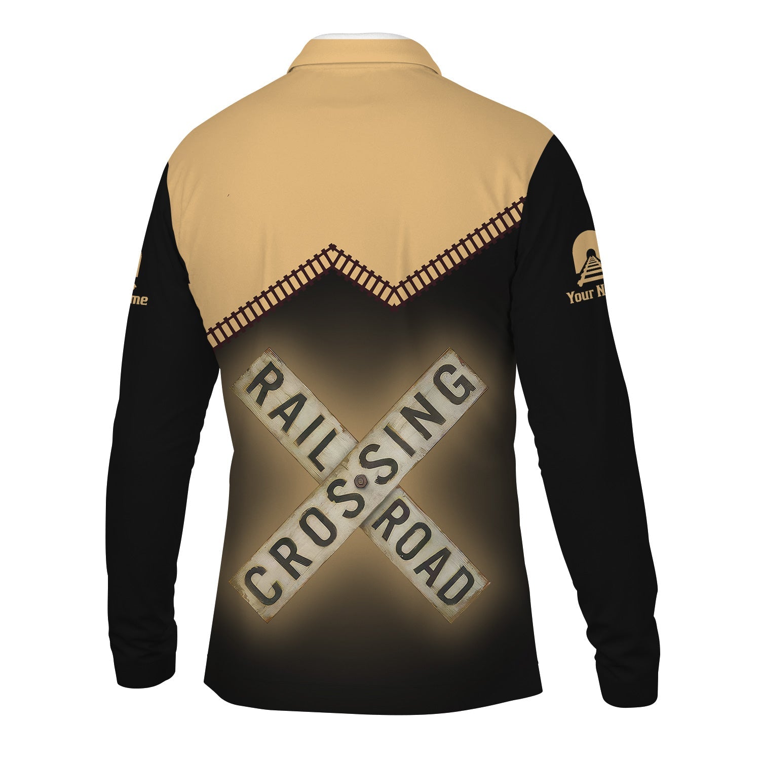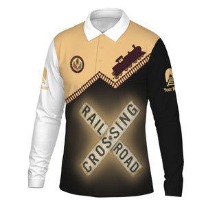 Railspirit Custom Name London, Midland and Scottish Railway Long Sleeve Polo Shirt Railroad Crossing Printed Train Track Shirt