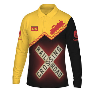 Railspirit Custom Name Louisville and Nashville Railroad Long Sleeve Polo Shirt Railroad Crossing L&N Printed Train Track Shirt