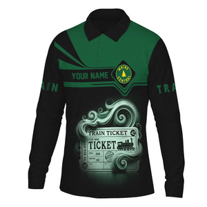 Railspirit Custom Name Maine Central Railroad Long Sleeve Polo Shirt Train Ticket Printed Shirt