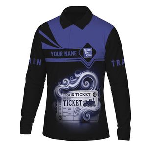 Railspirit Custom Name New York, Chicago and St. Louis Railroad Long Sleeve Polo Shirt Train Ticket Nickel Plate Road Printed Shirt