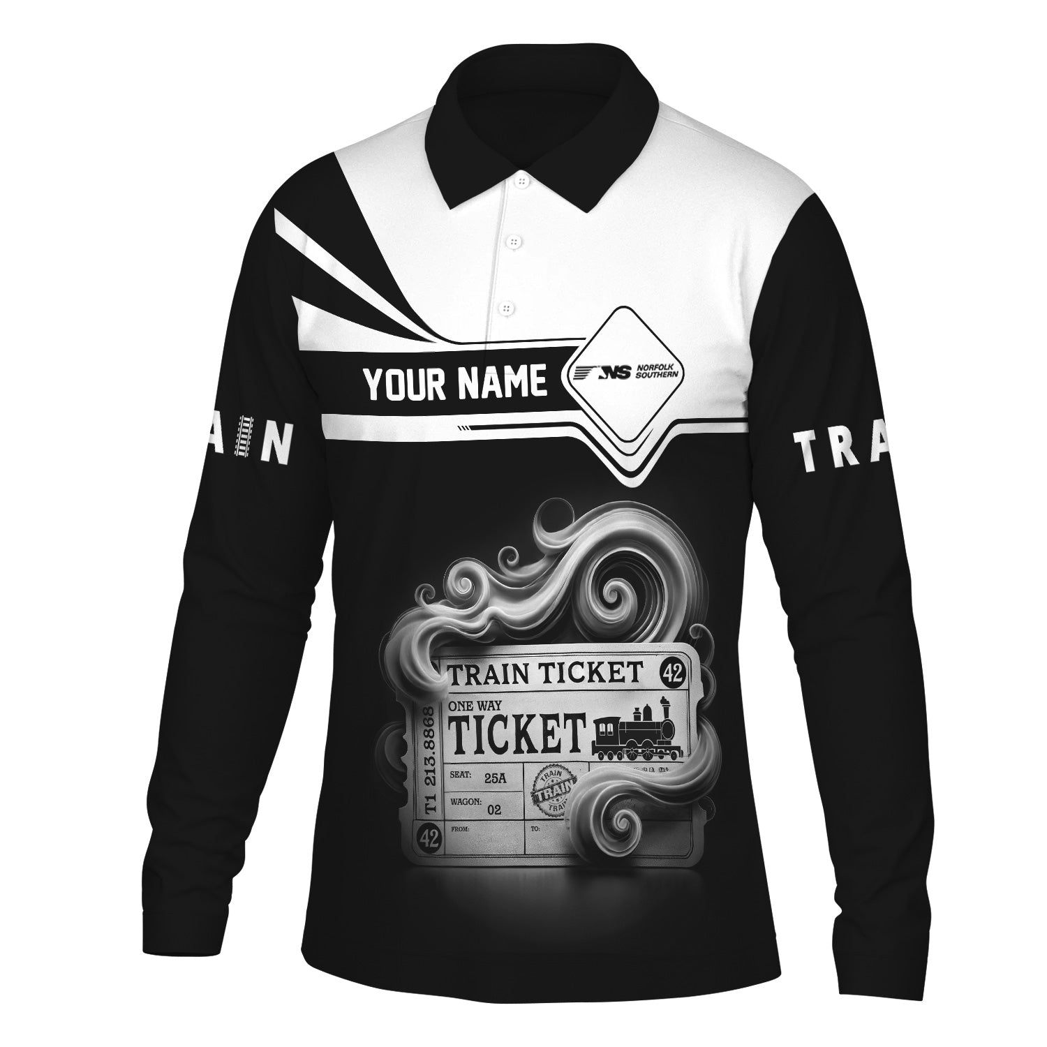 Railspirit Custom Name Norfolk Southern Railway Long Sleeve Polo Shirt Train Ticket Printed Shirt