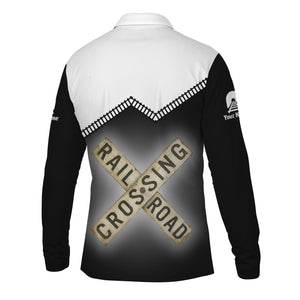 Railspirit Custom Name Reading Railroad Long Sleeve Polo Shirt Railroad Crossing Printed Train Track Shirt
