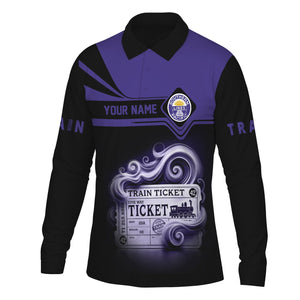 Railspirit Custom Name Southern Pacific Railroad Long Sleeve Polo Shirt Train Ticket Printed Shirt