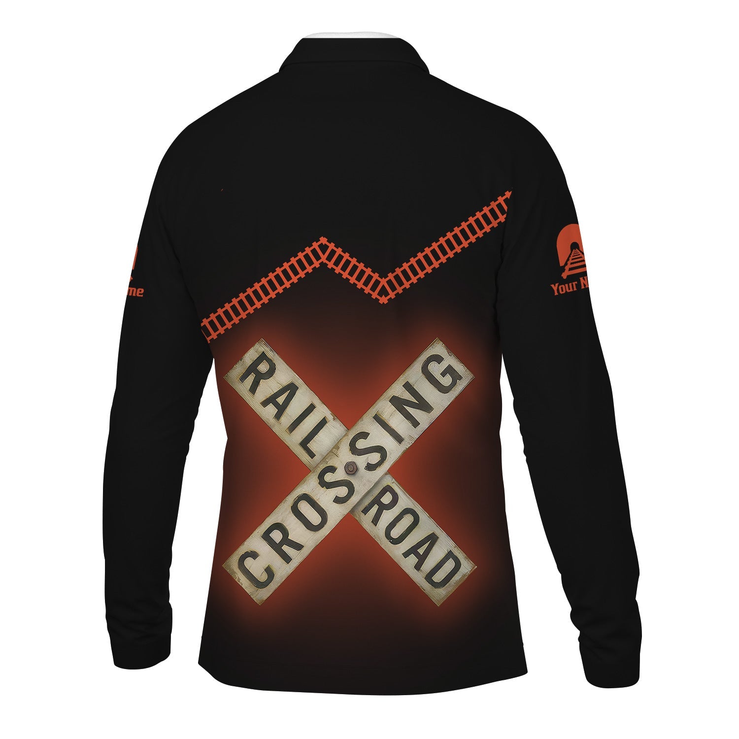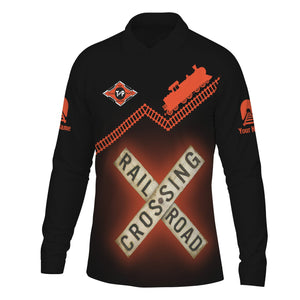 Railspirit Custom Name Texas and Pacific Railway Long Sleeve Polo Shirt Railroad Crossing Printed Train Track Shirt