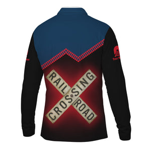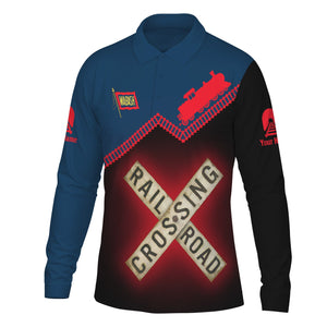 Railspirit Custom Name Wabash Railroad Long Sleeve Polo Shirt Railroad Crossing Printed Train Track Shirt