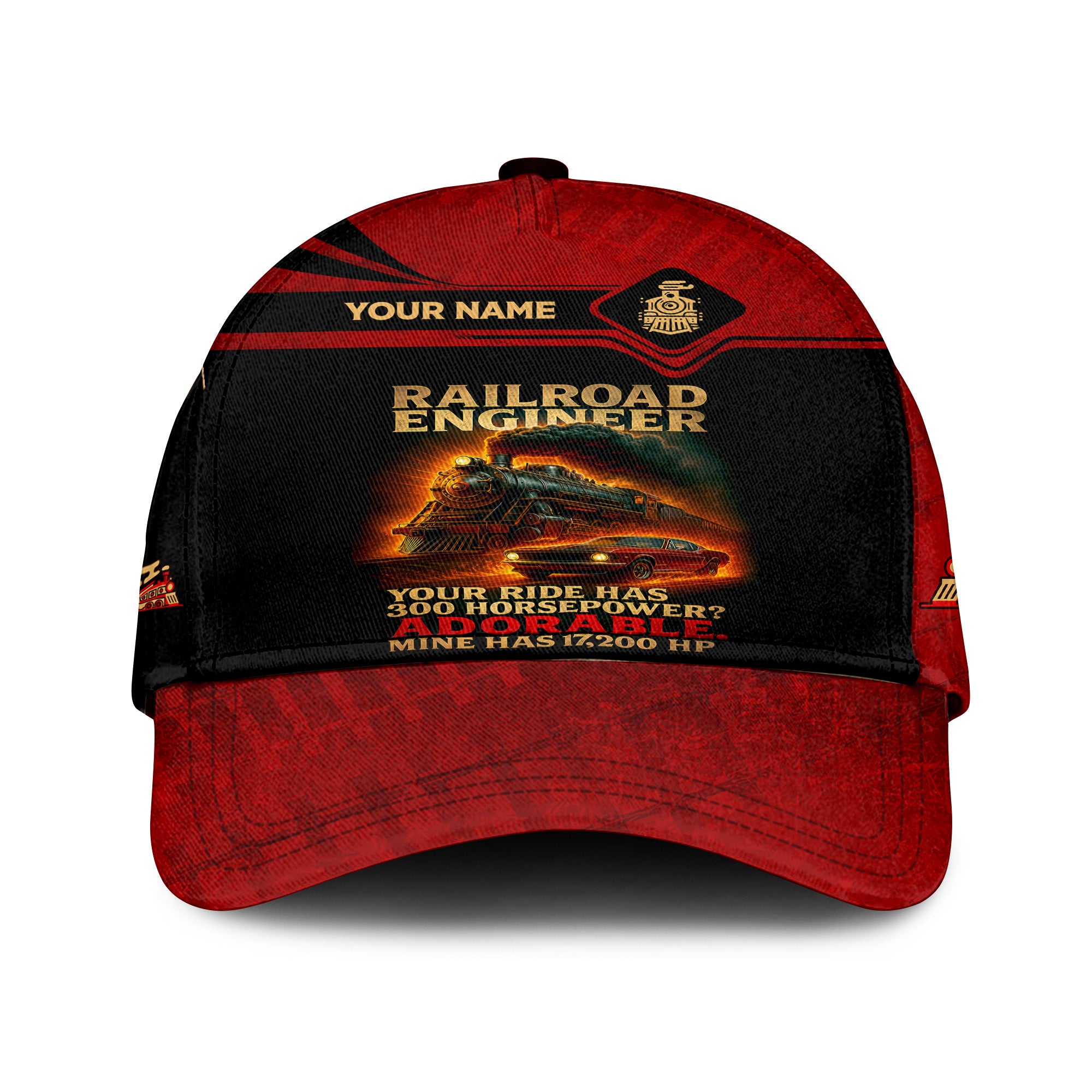 Custom Train Driver Hat, Funny Locomotive 17,200 Horsepower Quote Cap For Railroad Lovers